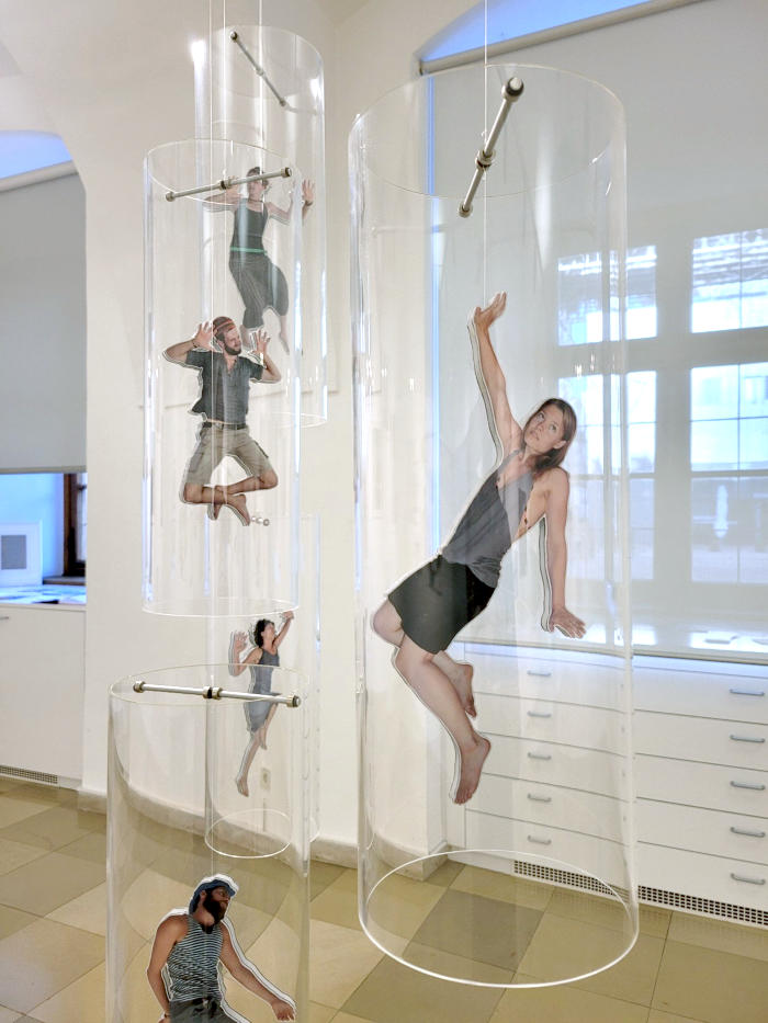 „Surrounded" 2016, Kinetisches Fotoobjekt, Acrylrohr, 180 x 90 x 90 cm