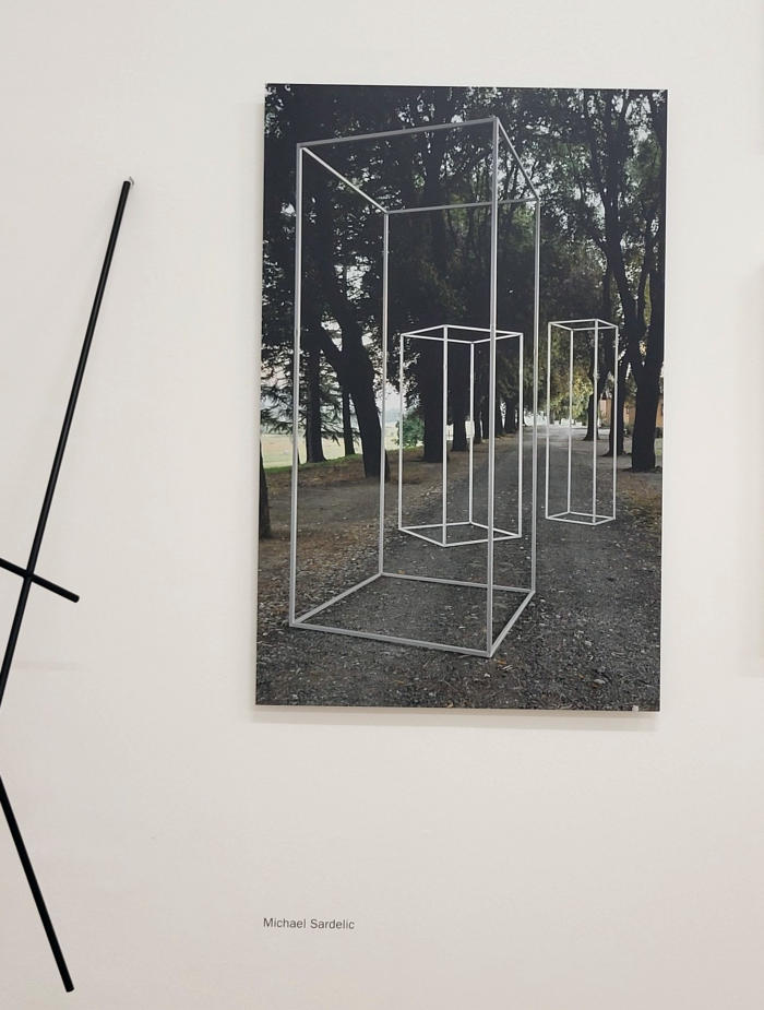 HuM-ART - "Retreat Framing", UV-Print auf Alu-Dibond, 2020 HuM-ART -  "Air Framing No 20“, UV-Print auf Alu-Dibond, 2019 Michael Sardelic - Ansicht HUNTENKUNST  2023 HuM-ART „Surrounded", 2016, Kinetisches Fotoobjekt, Acrylrohr, 180 x 90 x 90 cm