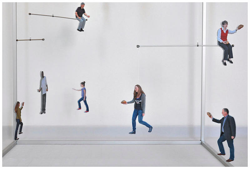 9 hanging figures and 8 seated figures, Solvent-