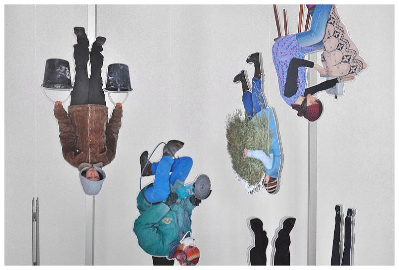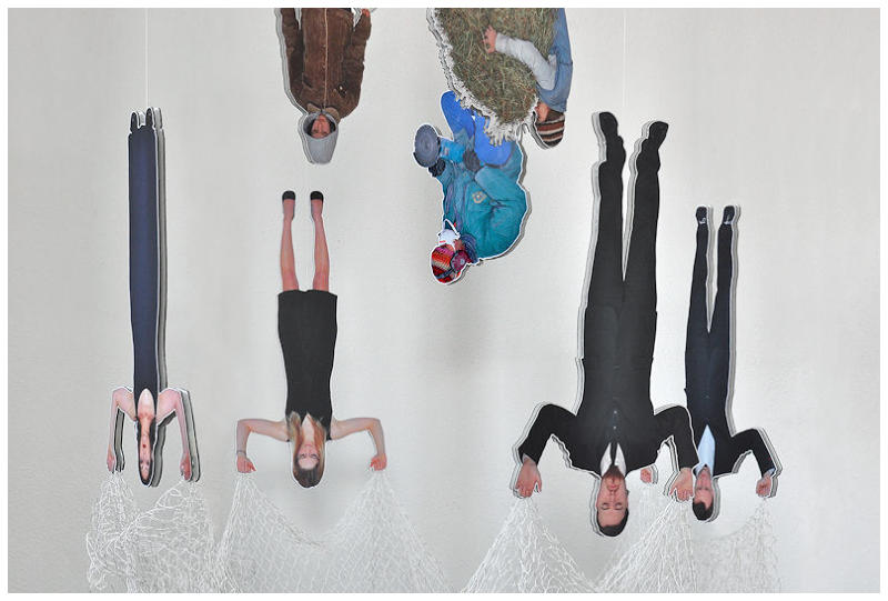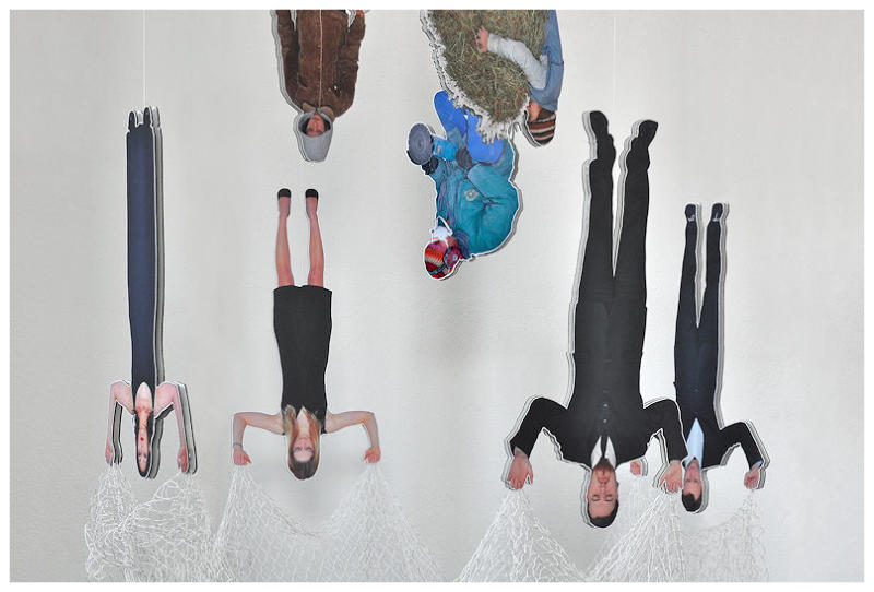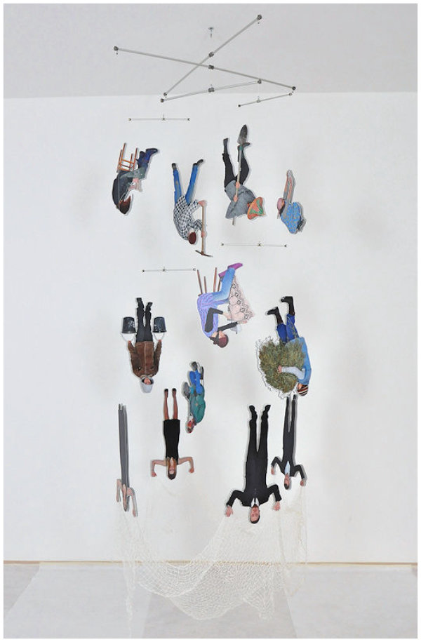 12 hanging figures, knotted nylon net, Solvent-